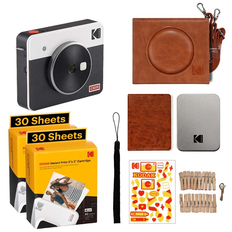 Kodak C300R Mini Shot 3 Retro 2-in-1 Portable Instant Camera & Photo Printer with 2 x 30 Sheet Cartridges and an Accessory Bundle!